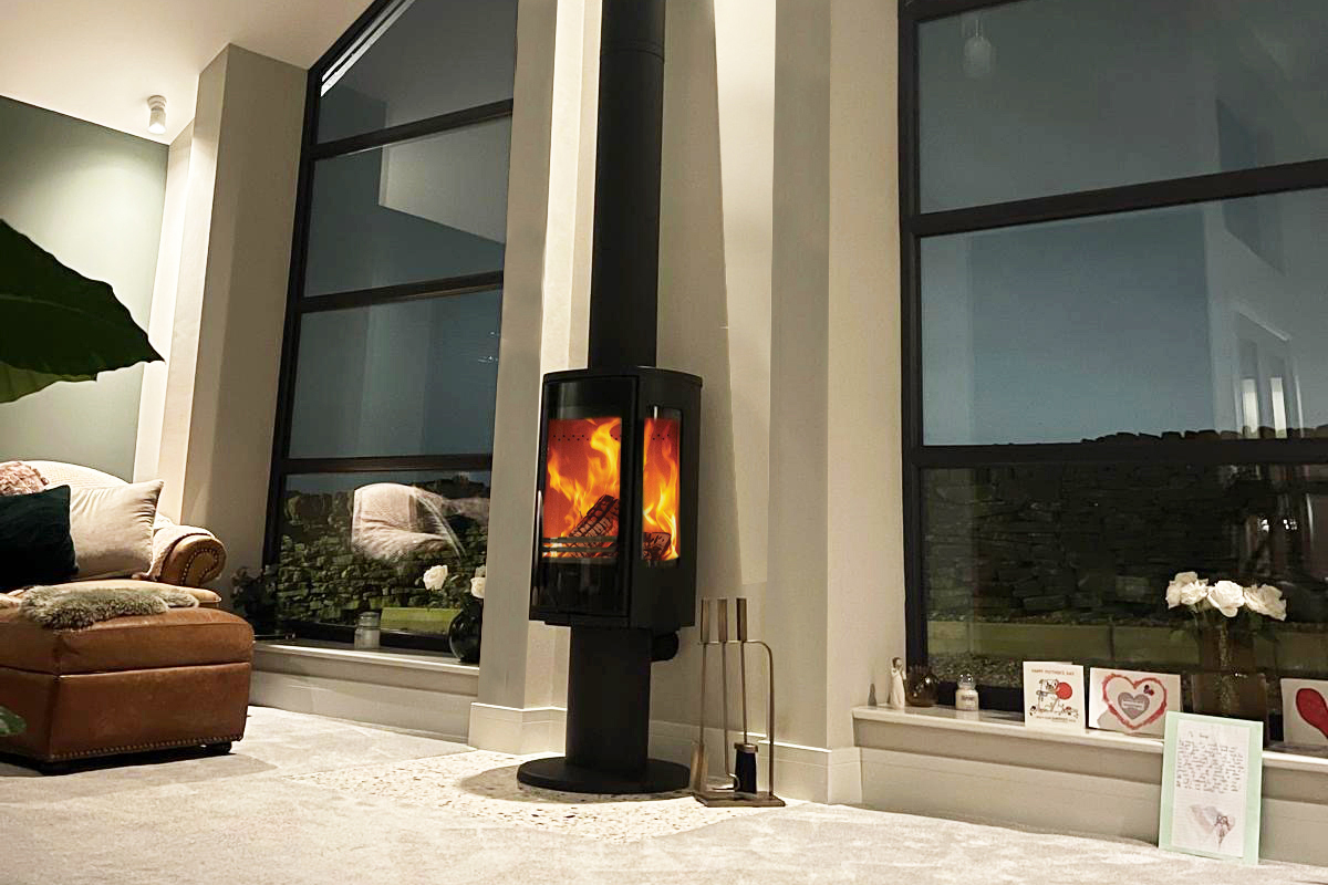 We specified the Contra 886G wood burning stove — a sleek, contemporary appliance that balances strong heat output with clean, modern styling.